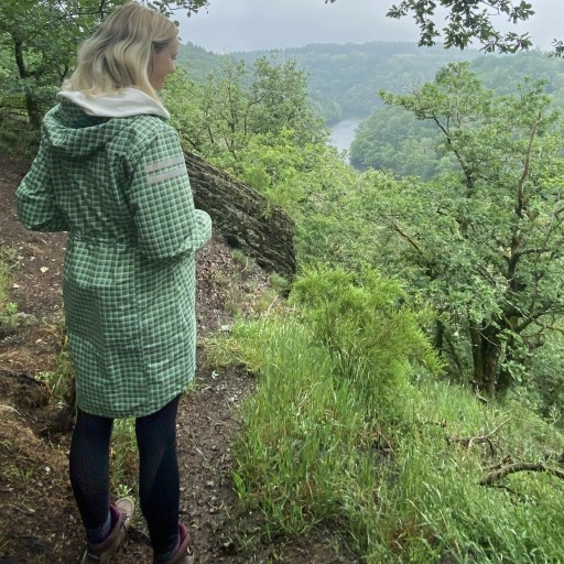Ducksday Raincoat Woman водонепроникний і дихаючий. Має м'яку підкладку і чудово захищає від вітру. Блискавки, шви та оздоблення також захищені від протікання. Безпека підкріплюється світловідбиваючими елементами, а стиль і клас забезпечується можливістю регулювання капюшона і талії. Крім того, є великі зовнішні кишені та дуже практична внутрішня кишеня, яка ідеально підходить для прогулянок мами!