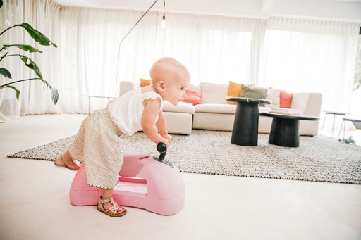 Як штовхач - завдяки бічній стороні з безпечними ковзними подушечками - його можна використовувати з 6-місячного віку, зростом приблизно від 62 см.