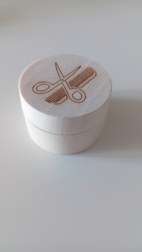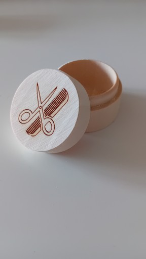 На коробці вигравірувано гребінець і ножиці (як на фото).
