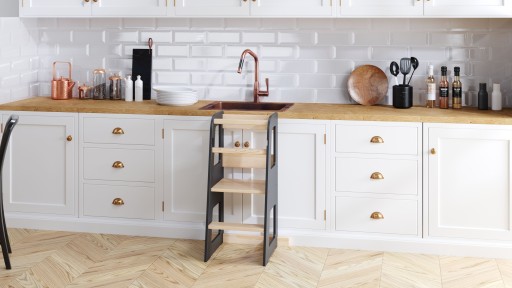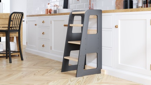 Кухонний помічник — це високоякісний продукт, який дозволяє безпечно відкривати для себе доступний світ через залучення та взаємодію в повсякденній сімейній діяльності, такій як участь у діяльності, пов’язаній з приготуванням їжі, чищенням зубів біля раковини тощо. Безперечною перевагою є заохочення дитини до самостійності і розвиток ручних навичок, пов’язаних із повсякденним життям, що втілюється в моторному розвитку маленької людини.