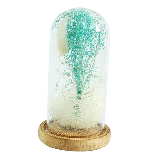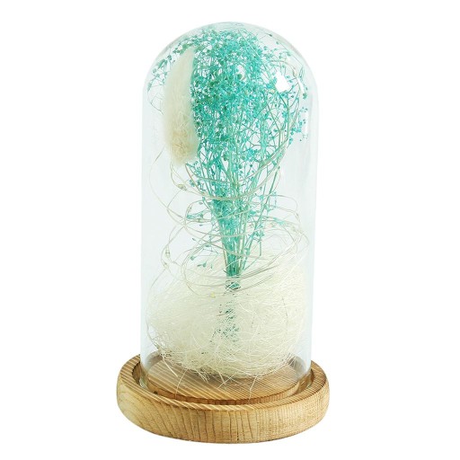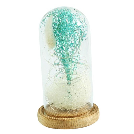 Світлодіодна настільна лампа зі скляним куполом із сухими квітами, зелена