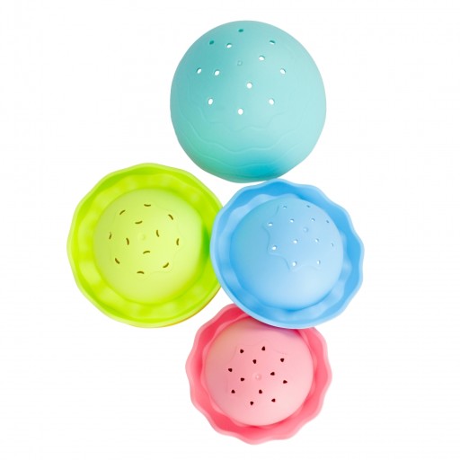 Сім відповідних стаканчиків, які можна вставляти одна в одну і навіть комбінувати, щоб сформувати «яйце» і катати. Різнокольорові чашки подарують дитині безмежні можливості для розваг. Розставляючи, складаючи та поєднуючи чашки, дитина вивчає поняття форми та розміру, а також вчиться сортувати та поєднувати. Іграшка ідеально підходить для купання, захоплюючи дитину надовго час. Розміри/Вага/Акумулятори: Розміри продукту: Д x В x Г см: 10х12х10, вага товару в упаковці кг: 0,12 кг, не потребує батарейок. Іграшка призначена для дітей віком: 6м. Упакований в сітчастий мішок з вішалкою.
