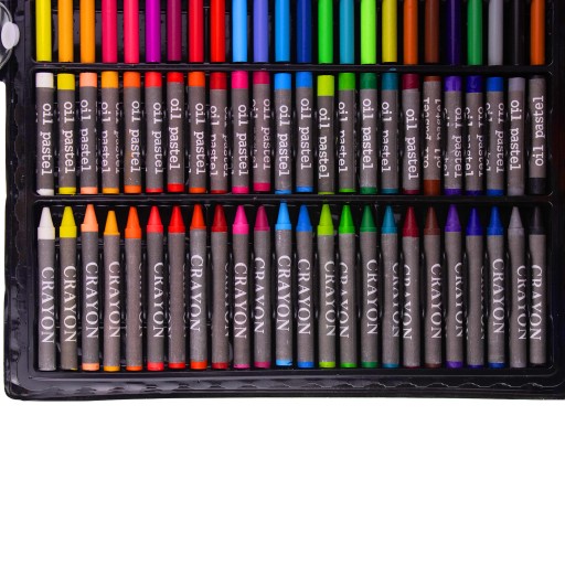 У набір входить олійна пастель, олівці, воскові крейди, фломастери, акварельні фарби, олівець та інші корисні аксесуари.Інструменти мають широкий вибір і привабливу палітру кольорів.