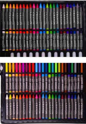 Валіза містить 48 олійних пастелей і 48 воскових олівців у широкій палітрі кольорів.