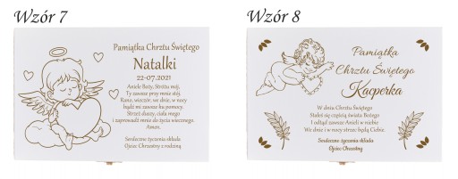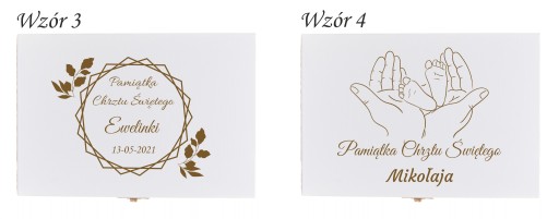 Дитячі столові прилади, поміщені в дерев'яну коробку - цікава ідея подарунка на хрещення або день народження. У набір входить якісна виделка, ложка, ложка і ложка. Декоративні столові прибори для дитини стануть приємним доповненням до їжі навіть для самого вибагливого. Крім того, ми можемо вигравірувати всі елементи зазначеним вами гравіюванням - наприклад, ім'я вашої дитини. Ми можемо вигравірувати індивідуальну присвяту на кришці скриньки за шаблонами, підготовленими нижче.