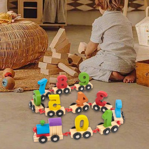 [Навчання в грі]: дерев’яна іграшка-поїзд із цифрами дозволяє дітям вивчати цифри 0-9 або нумерувати поїзди, навчатися під час гри та підвищувати ефективність навчання.