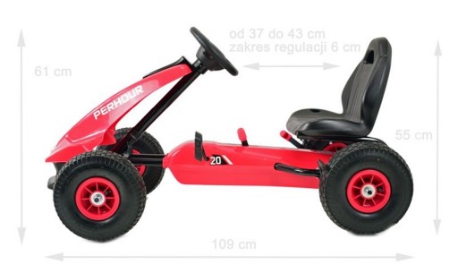 - відстань спинки сидіння від педалей: приблизно 67 см, (з повністю витягнутою вперед педаллю)