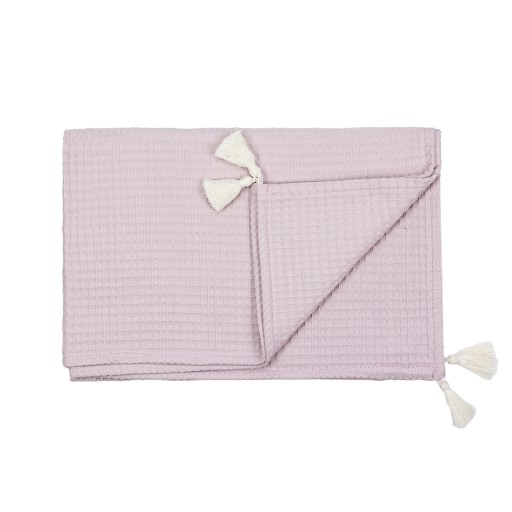 - Практична та зручна дитяча ковдра з м'якої натуральної 100% бавовни вафельного переплетення. Ковдра прикрашена бавовняними китицями ручної роботи. Має міжнародний сертифікат OEKO-TEX, що є гарантією довговічності та найвищої якості.