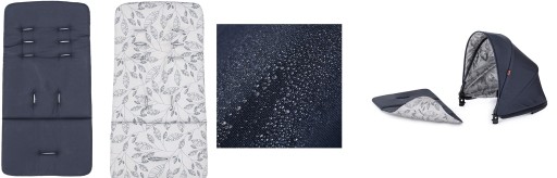 У комплекті трикомпонентні накладки на ремені безпеки в колір капюшона і вкладиш для коляски з двостороннім принтом.