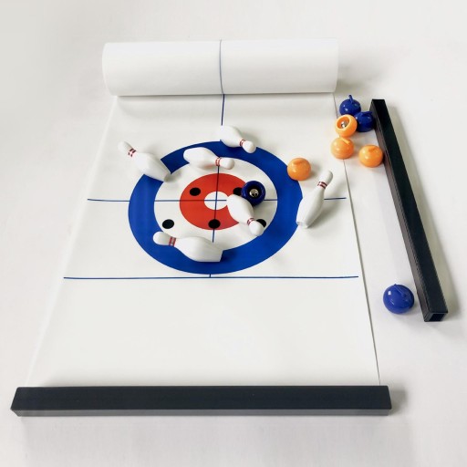 У комплект входить: 1 набір іграшок для керлінгу, включаючи 1 доріжку, 2 стаа, 8 м’ячів для керлінгу (2 кольори, по 4 кожного кольору), 6 окулярів для боулінгу, 2 сумки для зберігання, 1 інструкцію