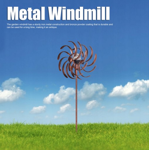 - Металевий садовий вітряк: цей художній вітряк у дворі можна ідеально інтегрувати у ваш сад. Різнобарвний дизайн, можна використовувати в будь-яку погоду, в будь-який час року, не тільки влітку.