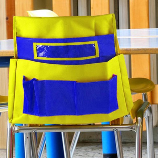 Органайзер для спинки стільця з тканини Оксфорд і тримач для етикеток для класу дитячого садка жовто-блакитний