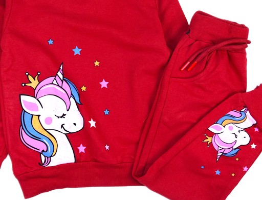 Спортивний костюм для дівчинки з аплікацією на рік. Толстовка надягається через голову, спереду кошеня, рукава на манжетах. Штанини з еластичним поясом, додатково перетягнутим шнурком, на штанинах зав'язки.