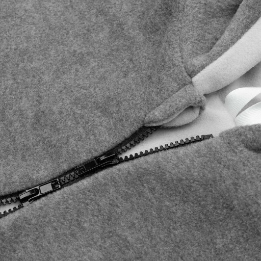 Пончо оснащено двосторонньою блискавкою з захистом від защемлення (у верхній частині пончо), а магніти під пахвами дозволяють легко одягати та знімати пончо з дитини.