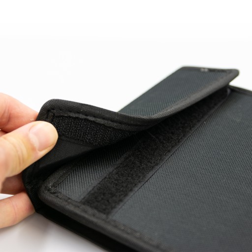 Він закривається на міцну липучку, яка запобігає його розкриттю під час носіння, наприклад, у сумці чи рюкзаку.