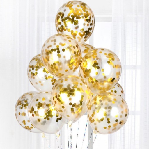 - Конфетті, що привертає увагу: прозорі повітряні кулі, наповнені золотим конфетті, роблять кожну подію незабутньою. Світло м'яко розбивається на їх поверхню, створюючи чарівний ефект.