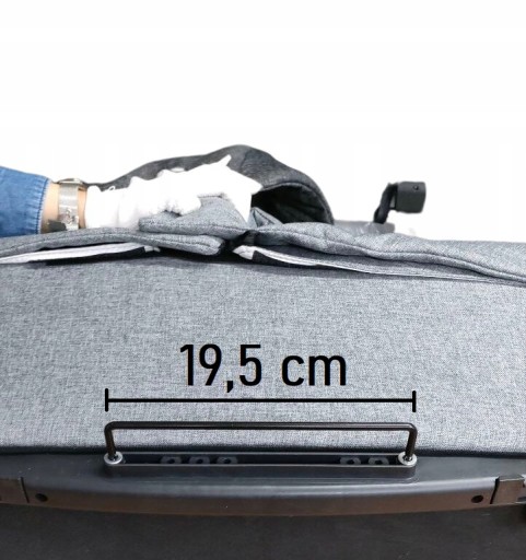 Відстань між монтажними штифтами в гондолі коляски має бути приблизно 19,5 см.