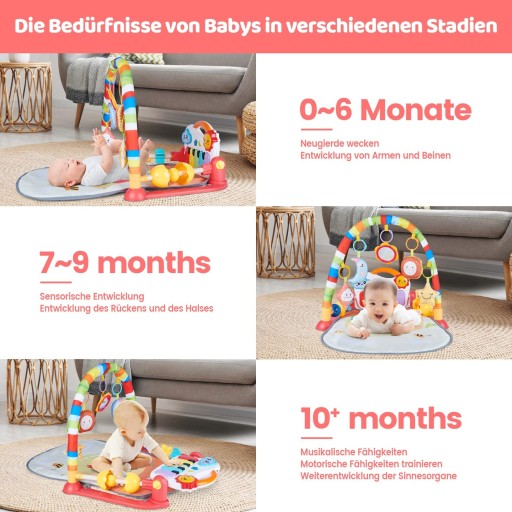 СПЕЦІАЛЬНО ДЛЯ ДІТЕЙ: розвиває та формує мозок дітей віком від 0 до 12 місяців, ігровий килимок спеціально розроблений для дітей віком від 0 до 12 місяців і стимулює їх, відтворюючи веселу музику в дитячому садку знову і знову.