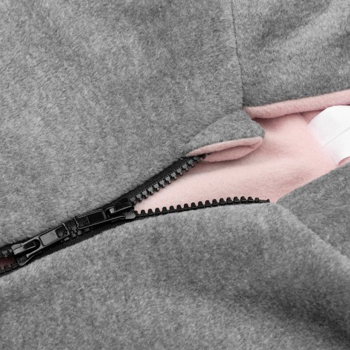 Пончо оснащено двосторонньою блискавкою з захистом від защемлення (у верхній частині пончо), а магніти під пахвами дозволяють легко одягати та знімати пончо з дитини.