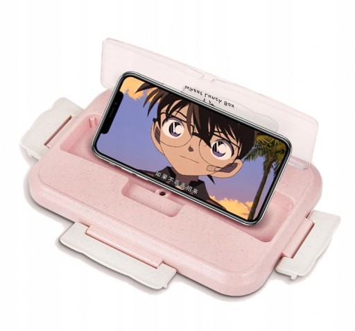 На передній частині кришки ланчбокса є канавка, куди можна вставити мобільний телефон і служити тримачем мобільного під час їжі. дуже практичний.