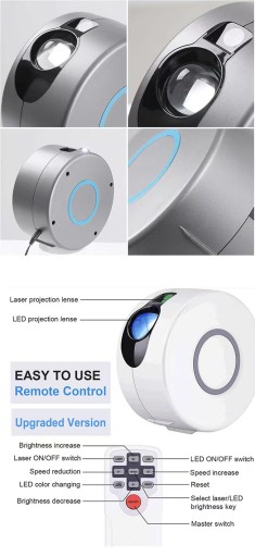 ✅ Інтуїтивно зрозумілий пульт дистанційного керування дозволяє зручно керувати на відстані, можна змінювати режими проекції, регулювати яскравість і швидкість обертання не встаючи;