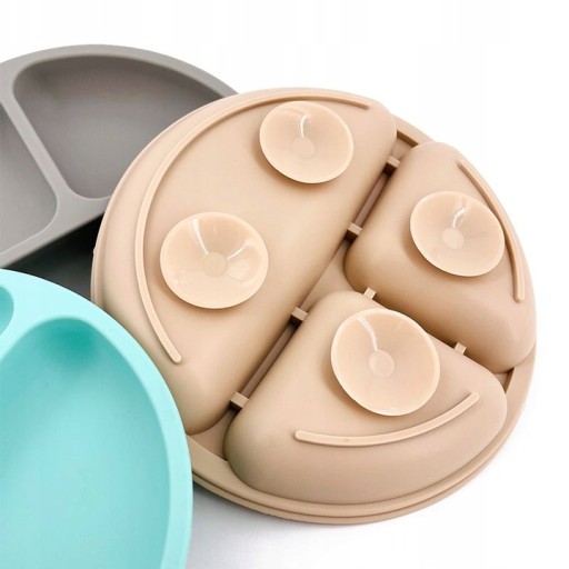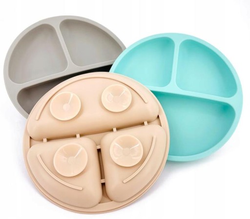 Трикомпонентна антиковзаюча тарілка з присоскою дозволяє дитині їсти самостійно, без необхідності мамі чи татові тримати тарілку.