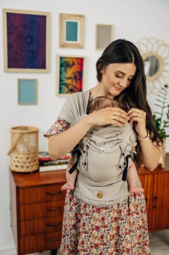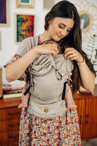 LennyHybrid - Adjustable CarrierHalf Buckle — це унікальна переноска, яка поєднує в собі переваги регульованої переноски та обмотки. Завдяки своїй структурі та системі регулювання дозволяє досягти правильного, ергономічного положення дитини. Додатково має 2 ремені, які стабілізують положення дитини з боків, що дозволяє безпечно носити новонародженого в колюсці. Регулювання панелі дозволяє колясці рости разом з дитиною.