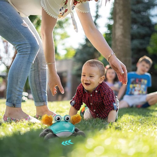 Завдяки своєму рухомому механізму краб постійно знаходиться в русі, заохочуючи малюка рухатися і ловити його. Це чудовий інструмент, який підтримує розвиток моторики маленької дитини та заохочує її повзати та рухатися.