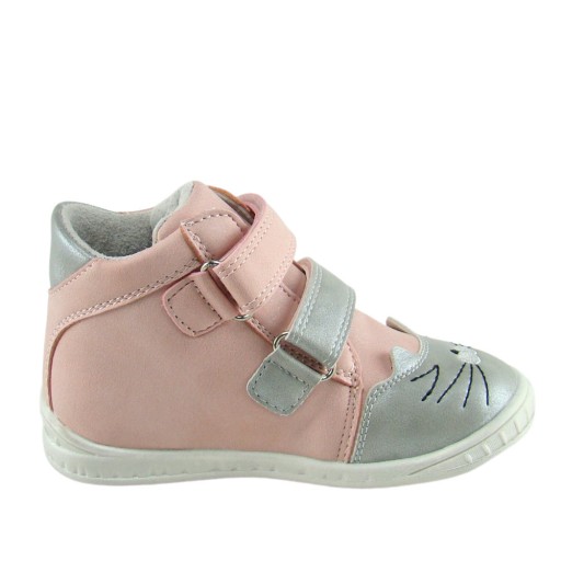 Дитяче взуття Wojtyko виготовлено з якісної екошкіри сіро-рожевого кольору.