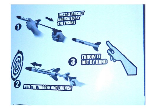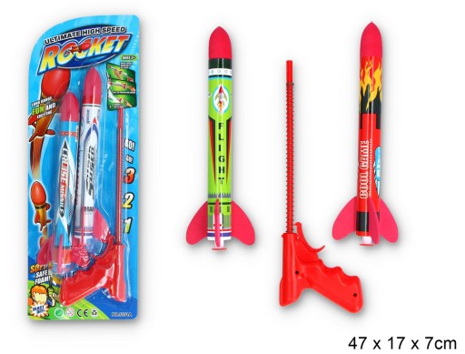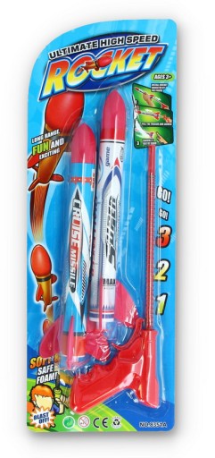 - Ракети з твердого пінопласту заряджаються на пускову установку - гармату і .... 3..2..1.. старт - натискаєш на курок, випущена ракета летить....