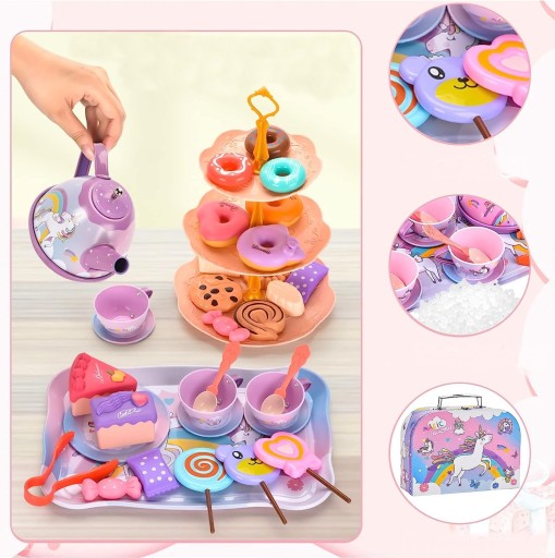 - ✅ Безпечний матеріал: наш дитячий чайний набір з єдинорогом виготовлено з безпечного листового металу та нетоксичного та нешкідливого пластику, який можна легко очистити тканиною або чистою водою. Всі деталі міцні та довговічні.