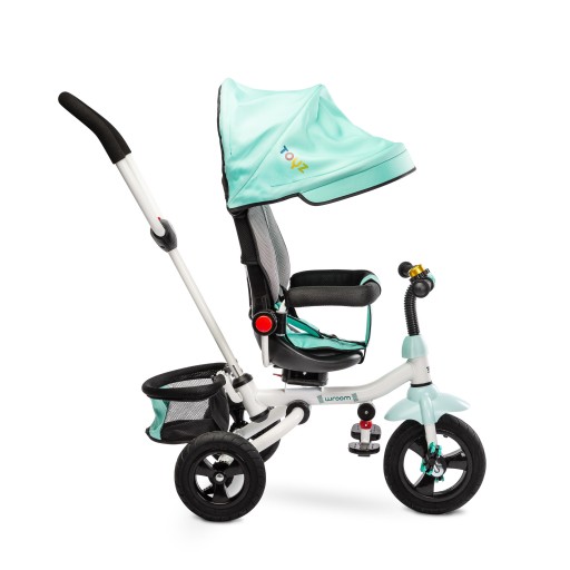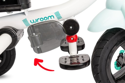 Триколісний велосипед Wroom - це зручний триколісний велосипед, який можна використовувати двома способами: дитину можна носити обличчям вперед або назад і тримати ноги на складній підставці для ніг, або вона може кататися самостійно. Wroom має численні зручності. Знімне наголів’я полегшує посадку, а м’яка оббивка забезпечує безпеку та комфорт під час водіння. Ззаду є кошик для дрібниць і ручка для двоступеневої регулювання висоти. Велосипед оснащений пінопластовими колесами, тому вам не доведеться хвилюватися про накачування шин або прокол. Обидва задні колеса мають окремі гальма. Складна конструкція велосипеда дозволяє легко транспортувати велосипед у багажнику та зберігати його, коли він не використовується.