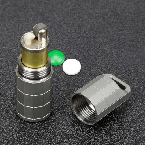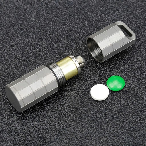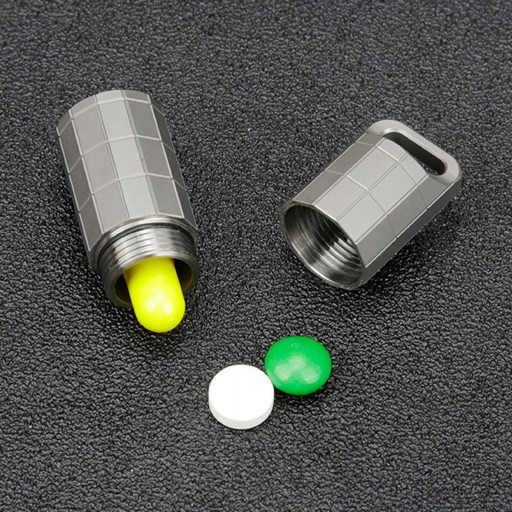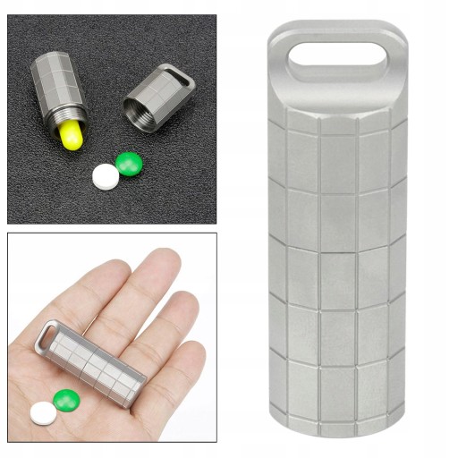 : Матеріал: виготовлено з високоякісного титанового сплаву, високої щільності, високої міцності, стійкості до корозії Портативний і легкий: компактний розмір і вишукане, комфортне відчуття в руці, ефективно захищає предмети, які ви носите Легко носити: кишеньковий розмір із кільцем для ключів, відкручується, можна покласти в гаманець, сумку, зручний у використанні. Багатоцільовий: можна використовувати як футляр для таблеток, водонепроникний ящик і попільничку на відкритому повітрі, для зберігання спецій, зубочисток, екстрених повідомлень, дрібних предметів тощо. Широко використовується : Підходить для кемпінгу на відкритому повітрі, походів, подорожей, подорожей, пікніків, барбекю, риболовлі, подорожей тощо