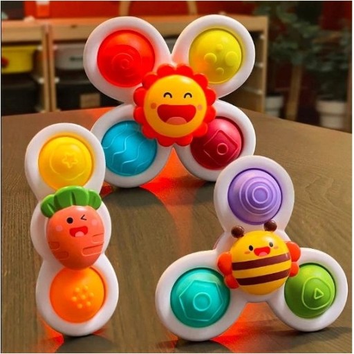 3. Багатофункціональна верхня іграшка: міцно поверніть її, і вона буде обертатися деякий час. Вони засмоктуються в стіл або піднос на дитячий стілець або знімаються з ігрової основи на підлогу.