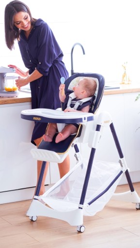 Мобільний багатофункціональний стілець, безсумнівно, стане в нагоді в щоденному догляді за дитиною. Завдяки коліщаткам, прикріпленим внизу, ви можете легко перенести їх в іншу кімнату. Якщо ви хочете посадити дитину за стіл або просто стежити за нею під час виконання повсякденних обов'язків, використовуйте замок.