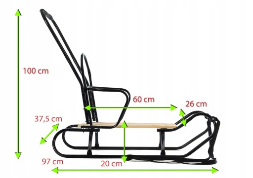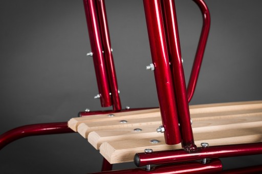 Санки виготовлені шляхом поєднання товстої сталевої труби і міцного сидіння з букових дощок. На відміну від китайських дешевих саней, труба, з якої зроблені санки, товста і міцна і прослужить більше, ніж тонка труба, яка використовується в китайських екземплярах. Наші сани мають широку колію, тому їх важко перекинути.