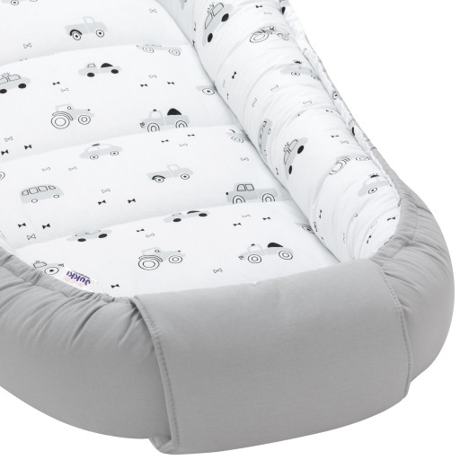 - двосторонній дитячий кокон із зовнішніми розмірами: 55 х 100 см, розміром спального місця: 30 х 70 см, товщиною борту 14 см.