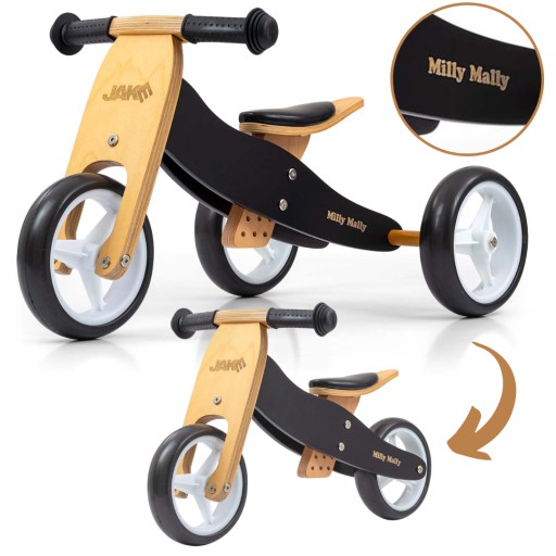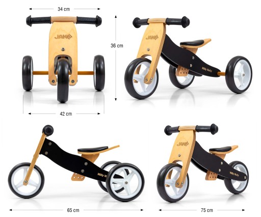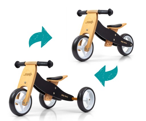 Неоціненною перевагою є можливість переробити його з триколісного велосипеда в двоколісний бігунок. Завдяки цьому ваша дитина зможе довше насолоджуватися цим незвичайним велосипедом, який «росте» разом з ним. М'які неслизькі ручки з чохлами захистять руки дитини, а регульована висота сідла дозволить підлаштувати відповідну висоту під зріст дитини. Також є обмежувач повороту, щоб дитина не крутила кермо, заважаючи йому їхати.