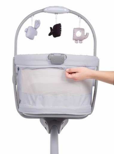 Просто натисніть ногою на педаль, розташовану в основі, візьміться за ручку у верхній частині гондоли та плавним рухом перемістіть сидіння вгору або вниз, щоб завжди мати зоровий контакт з дитиною.