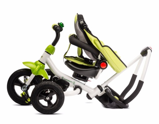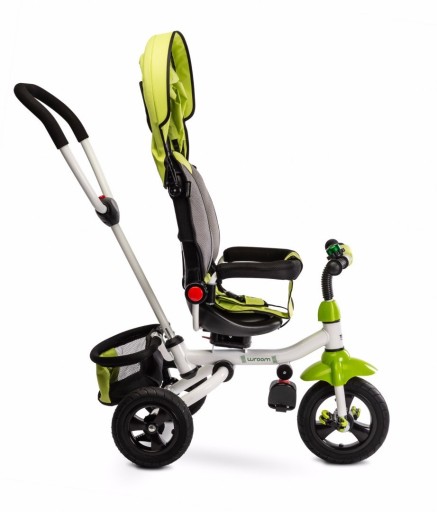Велосипед Wroom – це зручний триколісний транспортний засіб, який можна використовувати двома способами: дитину можна возити обличчям вперед чи назад і тримати її ніжки на складній підставці для ніг, або вона може кататися самостійно. Wroom має численні зручності. Знімне наголів’я полегшує надягання, а його м’яка підкладка забезпечує безпеку та комфорт під час водіння. Ззаду знаходиться кошик для дрібниць і ручка управління з двоступеневим регулюванням висоти. Велосипед оснащений пінопластовими колесами, тому вам не доведеться турбуватися про накачування шин або їх прокол. Обидва задні колеса мають окремі гальма. Складна конструкція велосипеда дозволяє легко транспортувати велосипед у багажнику та зберігати його, коли він не використовується.