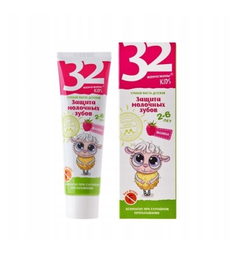 Зубна паста дитяча 32 PEARLS KIDS Захист молочних зубів Малина розроблена у власному науковому центрі з урахуванням специфіки росту і розвитку молочних зубів.