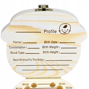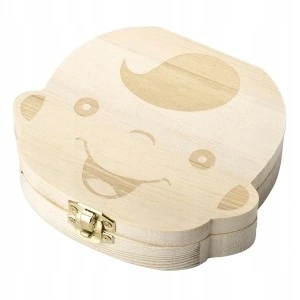 На поверхні зубної коробки нанесено миле букове личко малюка. оснащена оцинкованою пряжкою, легко відкривається/закривається, захищає зуби в зубних отворах від випадання з сувенірних коробок.
