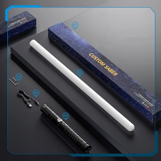 - USB Rechargeable Lightsaber: вбудована літієва батарея світлового меча, USB-кабель для заряджання. З вхідною потужністю 5 В/1 А будь-який пристрій, який може видавати таку ж потужність, як порт USB, може зарядити світловий меч. тому зарядка дуже зручна.