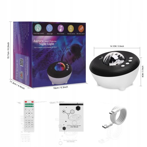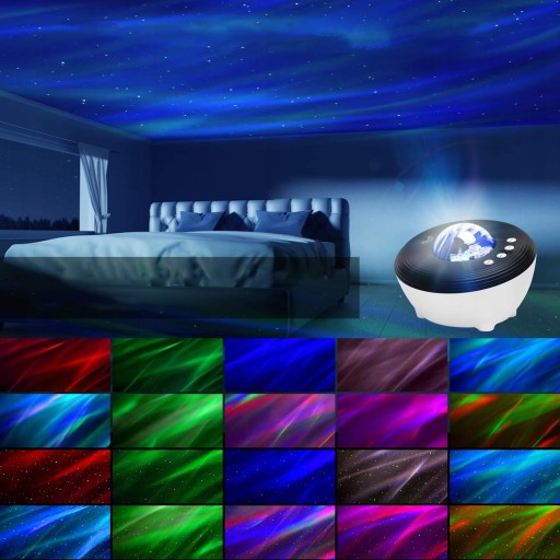 - Проектор Aurora Light 6 в 1: проектор Aurora Light із проектором Rainbow Light і проектор Blue Sky із проектором Star Light, музичним динаміком Bluetooth і апаратом білого шуму. Зоряне світло може проектувати кольорове зоряне небо на вікна та стелю. 48 кольорових режимів, до 16,7 мільйонів світлових ефектів. Динамічне проекційне світло, що обертається на 360 градусів, забезпечує чудовий ефект проекції. Ідеально підходить для сімейних зустрічей, вечірок, дитячих днів народження, Різдва тощо.