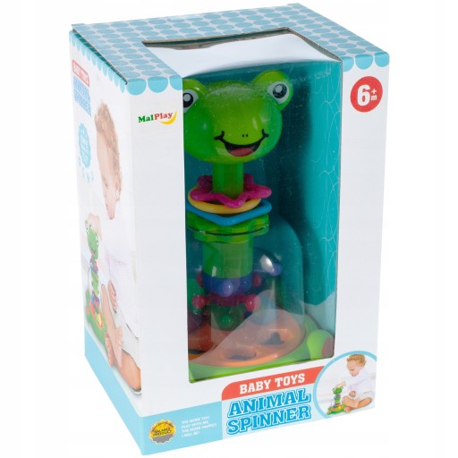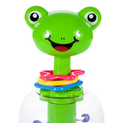 У центрі жаби розташовані 3 рухливі кільця, які приводять у рух 4 різнокольорові кульки. При натисканні на голову жаби колеса всередині обертаються, а кульки злегка стрибають!