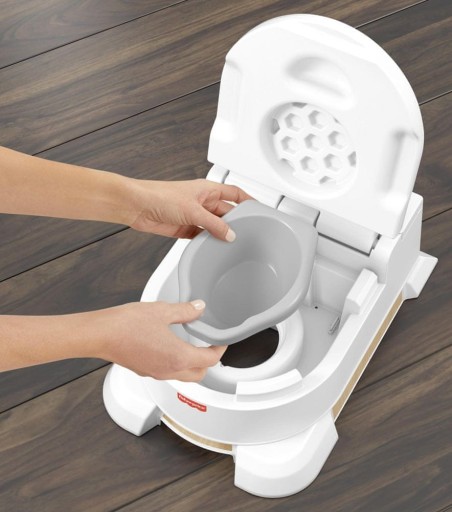 Коли ваш малюк починає вчитися користуватися справжнім туалетом, знімне сидіння горщика забезпечить йому підтримку. Горщик також перетворюється в табуретку, завдяки чому дитина легко дістанеться до раковини.