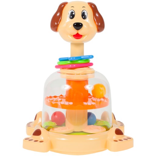 Класична іграшка для найменших з різнокольоровою собачкою!Натисніть на голову собачки і подивіться, як ляльки стрибають і б'ються в потрібні місця в животик!
