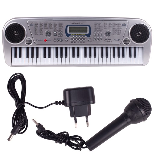 Мікрофон, що входить в комплект, дозволяє поєднувати електронну музику зі співом вашої дитини. В комплект входить: шнур живлення та МІКРОФОН, клавіатура має 2 СТЕРЕО динаміка, 2 виходи на задній панелі: (на мікрофон, на додаткові колонки), LCD дисплей з підсвічуванням зеленого кольору.