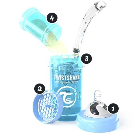 Антиколікова пляшечка Twistshake — найкращий вибір для комбінованого вигодовування, коли ви годуєте дитину грудьми та з пляшечки. Пляшки оснащені унікальною системою Twistflow, яка забезпечує рівномірний потік їжі і тим самим запобігає колькам. TwistFlow складається з вентиляційного ущільнення та сітки для змішування їжі,