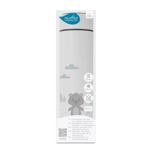 Дитяча пляшечка Nuvita 4455 з нержавіючої сталі з вакуумною ізоляцією та світлодіодним дисплеєм. Підходить для збереження молока та напоїв гарячими протягом 12 годин або холодними протягом 24 годин. Не містить BPA, фталатів і свинцю. Стійкий до подряпин силіконовий спд. Розумна термопляшечка з вакуумною ізоляцією об’ємом 500 мл зі світлодіодним дисплеєм температури. Не містить бісфенолу А та фталатів УНІКАЛЬНА НА РИНКУ ТА СПЕЦІАЛЬНО РОЗРОБЛЕНА ДЛЯ МАЛЮКІВ ТА ДІТЕЙ: дитяча пляшечка Nuvita 4455 із нержавіючої сталі з дисплеєм температури з вакуумною ізоляцією – це єдина розумна дитяча пляшечка зі світлодіодним дисплеєм, що вказує на температура вмісту. Завдяки інноваційному термометру, вбудованому в кришку, ви можете легко, практично та швидко перевірити, чи відповідає температура їжі чи напоїв усередині. ДЛЯ ГАРЯЧИХ І ХОЛОДНИХ НАПОЇВ: наша розумна пляшка з вакуумною ізоляцією виготовлена з подвійного шару нержавіючої сталі та технології вакуумної ізоляції, що робить її ідеальною для збереження молока та гарячих напоїв гарячими протягом 12 годин або холодними протягом 24 годин. ОСОБЛИВОСТІ: Розумна дитяча пляшечка з вакуумною ізоляцією з нержавіючої сталі та подвійною теплоізоляційною стінкою. Щільно закривається кришка, що запобігає витоку рідини та забезпечує збереження внутрішньої температури протягом більш тривалого періоду часу. Великий отвір 5,2 см для легкого очищення. Батарея світлодіодного дисплея вбудована в кришку, повністю ізольована і має термін служби 2 роки. Запасні кришки продаються окремо. Не містить BPA, фталатів і свинцю. Стійкий до подряпин силіконовий спд. МАТЕРІАЛИ ВИСОКОЇ ЯКОСТІ: у Nuvita ми працюємо лише з матеріалами найвищої якості, щоб запропонувати вам і вашій дитині найкращі продукти. Усі наші термоконтейнери виготовлені з 100% нержавіючої сталі 18/8, найвищої доступної якості, що забезпечує гігієнічний, безпечний і міцний матеріал, який запобігає зміні поживних речовин і смаку. Наші термоси не залишають плям і не вбирають запахи. Нержавіюча сталь є ідеальним матеріалом для упаковки продуктів харчування та напоїв. Дитячі термоконтейнери Nuvita НАЙКРАЩЕ ДЛЯ ВАШОЇ ДИТИНИ: усі наші термоконтейнери виготовлені зі 100% нержавіючої сталі 18/8 і мають подвійну термостінку з високою ізоляцією. Завдяки цьому напої та їжа залишаються холодними або гарячими протягом багатьох годин! Здатність нержавіючої сталі протистояти корозії, викликаній багатьма кислими харчовими продуктами та напоями, а також її унікальні властивості роблять нержавіючу сталь ідеальним матеріалом для упаковки харчових продуктів і напоїв. ХАРАКТЕРИСТИКИ ЗБЕРІГАННЯ ТЕМПЕРАТУРИ: Зберігає їжу та напої потрібної температури протягом тривалого часу! Залежно від обраної моделі температура гарячої їжі та напоїв буде зберігатися від 12 до 14 годин, а холодної їжі та напоїв – до 24 годин. Нержавіюча сталь має набагато кращу ізоляційну здатність, ніж інші матеріали, такі як скло чи пластик. ЛЕГКО ЧИСТИТИ: Завдяки матеріалу та великим отворам, які мають наші пляшки та термоконтейнери, чистити дуже легко. МІЦНИЙ ТА СТІЙКИЙ: Основою є довговічність - нержавіюча сталь не зношується і залишається довговічною роками, тому ви матимете термос надовго.